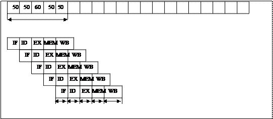 Если же используется конвейерная организация, длительность такта будет равна длительности самого медленного этапа обработки плюс накладные расходы при передаче данных от этапа к этапу(5нс), т.е. 65нс данных.