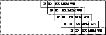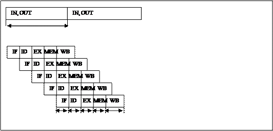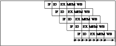 Хотя время выполнения одной команды в таком конвейере будет состоять из пяти тактов, в каждом такте аппаратура будет выполнять в совмещенном режиме 5 различных команд: