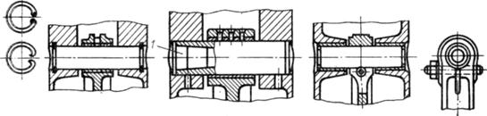 Осевая фиксация плавающих пальцев и предотвращение их бокового смещения вдоль оси пальца осуществляются с помощью стальных колец, устанавливаемых в канавки в бобышках поршня по обе стороны с торцов пальца.(Рис. 6.) Иногда используют в этих целях заглушки (пробки) из мягкого металла (алюминия).