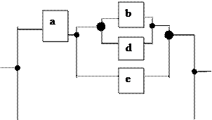 Например, высказывание «изделие находится в работоспособном состоянии, если в таком же состоянии находится элемент а и один из следующих элементов: в или d или оба элемента вместе взятых». На языке математической логики это можно записать: