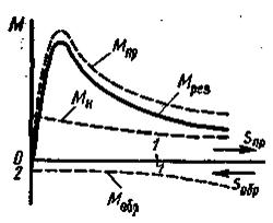 Рис. 3 Зависимости моментов асинхронного двигателя от скольжения