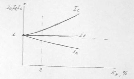 Рис. 4. Зависимость тока в фазах электродвигателя от коэффициента несимметрии.