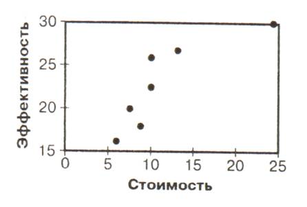 Как показывает опыт, наиболее эффективные проекты нередко оказываются и наиболее дорогостоящими. Естественно, что если бы среди рассматриваемых ЛПР предложений оказался проект, ожидаемая эффективность которого превосходит ожидаемую эффективность других проектов, а стоимость — меньше стоимости других проектов, то стоящая перед ЛПР проблема выбора решалась бы просто. Такой проект и является наиболее предпочтительным.
