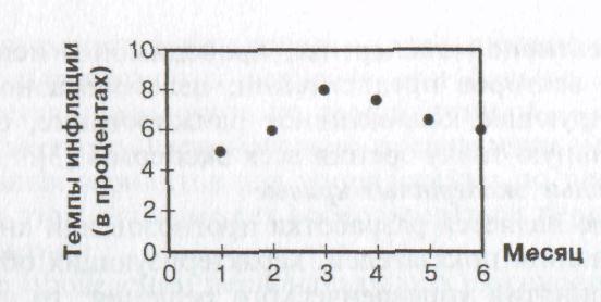 В качестве примера дискретной экспертной кривой приведем экспертную кривую ожидаемого изменения темпов инфляции в период с октября 1995 по март 1996 г., разработанную экспертами в июне 1995 г. (рис. 6.1).