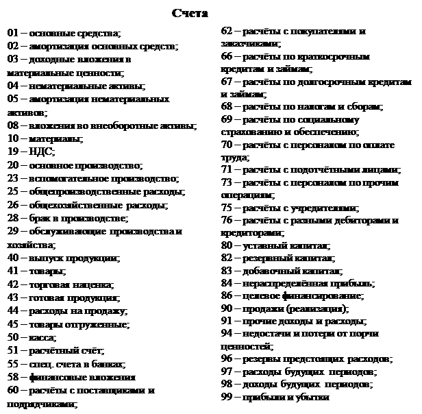 Аналитические счета – используются для более детального учёта хозяйственных средств по составным частям в натуральном и денежном выражении.