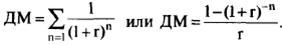 Если поступление или расходование денежных средств происходит равномерно через равные временные интервалы и в равной сумме, то такой денежный поток называется аннуитетом. Процесс его дисконтирования можно значительно упростить, введя дисконтный множитель для аннуитета (ДМ), который рассчитывается следующим образом: