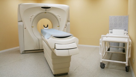 Компьютерная томография (рис.30) - это метод трехмерного исследования внутренних органов и анатомических структур человека с использованием рентгеновского излучения. Метод компьютерной томографии основан на том, что различные по плотности структуры организма (кости, мягкие ткани, полости) по-разному пропускают рентгеновские лучи. Излучение, проходя через тело человека, попадает на специальный детектор. После проведения серии снимков в различных проекциях, компьютер обрабатывает полученную информацию и выводит результат обследования - компьютерную томограмму. Компьютерная томограмма позволяет с высокой точностью выявить положение, форму, размеры и строение различных структур организма, установить активность процесса и выбрать наиболее рациональный хирургический доступ при необходимости оперативного лечения.