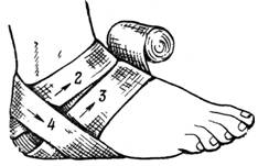 Восьмиобразная повязка на голеностопный сустав. Повязка применяется для фиксации голеностопного сустава и перевязочного материала.