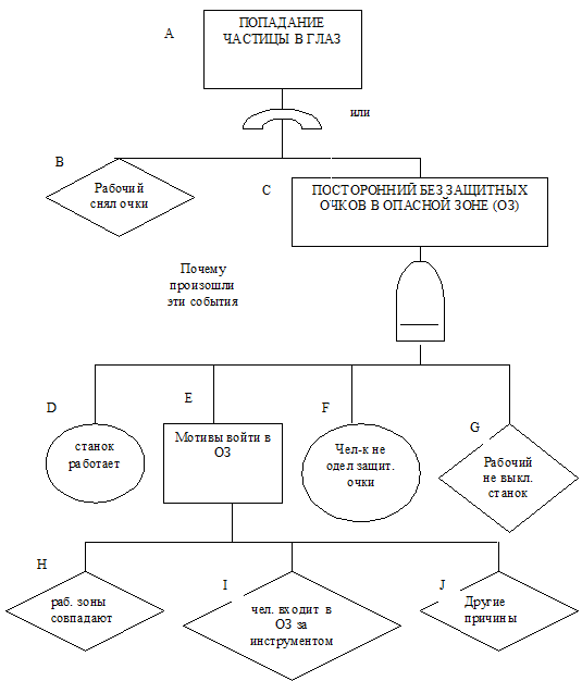 1. Выбирается уровень детализации эрготической системы, и рассматриваются все возможные нежелательные события в системе.