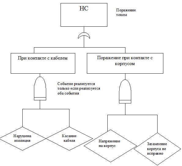 3. Исходное событие. В данном случае может выступить либо нормальное событие, либо отказ. Проявляется на элементарном уровне (на уровне элементов).