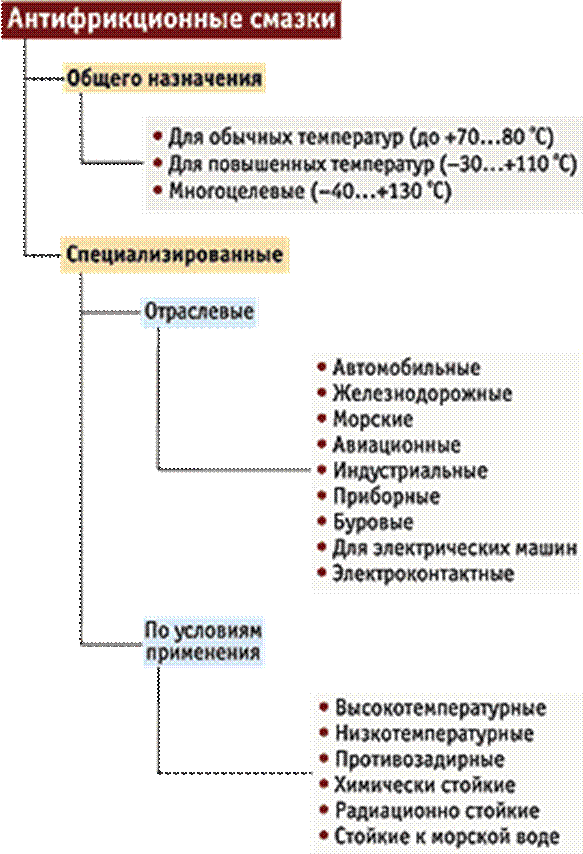– пластичные или консистентные, смазки, которые в обычных условиях находятся в мазеобразном состоянии (технический вазелин, солидолы, консталины, жиры и др.). Они подразделяются на антифрикционные, консервационные, уплотнительные и др.;