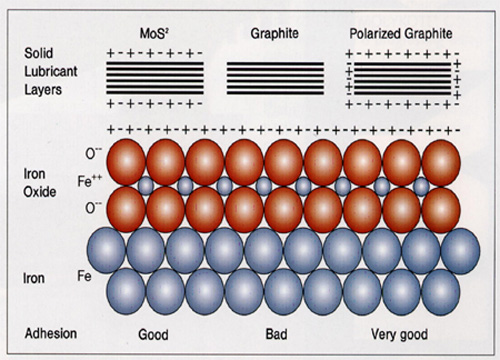 Высокая адгезия поляризованного графита к металлическим поверхностям, наряду с его термической стабильностью, делают его одним из наиболее перспективных инновационных смазочных материалов.