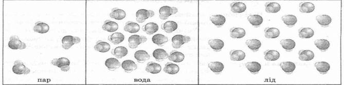 Молекула воды в газообразном, жидком и твёрдом состоянии: