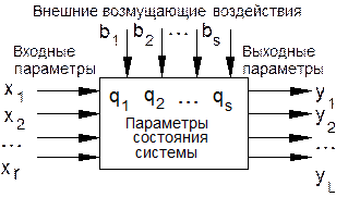 Под входными параметрами системы понимается комплекс параметров внешней среды (в том числе выходные параметры систем, внешних по отношению к рассматриваемой, например, систем управления), оказывающих значительное влияние на состояние и значение выходных параметров рассматриваемой системы и поддающихся учету и анализу средствами, имеющимися в распоряжении исследователя.