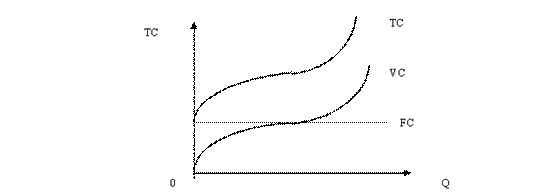 Как мы видим, по мере достижения оптимальных размеров производства (точка Q1) происходит относительная экономия переменных издержек. Однако дальнейшее расширение производства неизбежно приведет к новому росту переменных издержек.