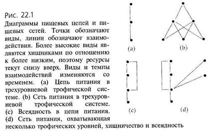 где L – число ненулевых коэффициентов взаимодействий в матрице сообщества. Для экосистем на рис. 22.lb S=6; С = 16/30= 0,53.'