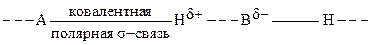Водородной называют связь образуемую атомом водорода, который ковалентно связан с атомом сильно электроотрицательного элемента А и другим подобным атомом В: