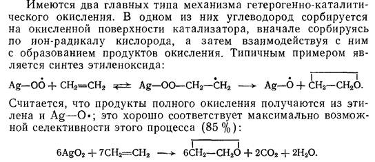 В действительности превращение этилена в окись представляет собой совокупность большего числа элементарных реакций, идущих по цепному радикальному механизму. Оптимальное время пребывания реакционной смеси в зоне реакции составляет 0,4-1,5 секунды.