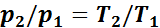 Иначе говоря, при постоянной температуре удельные объемы газа обратно пропорциональны его давлениям:
