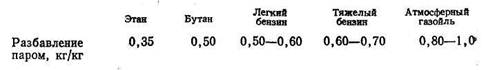 С увеличением разбавления углеводородов водяным паром' снижается коксообразование в реакторе, так как уменьшается скорость реакций второго и более высоких кинетических порядков, ведущих к получению высокомолекулярных соединений — предшественников кокса. Степень разбавления различных видов сырья паром меняется обычно в зависимости от склонности его к коксообразованию следующим образом