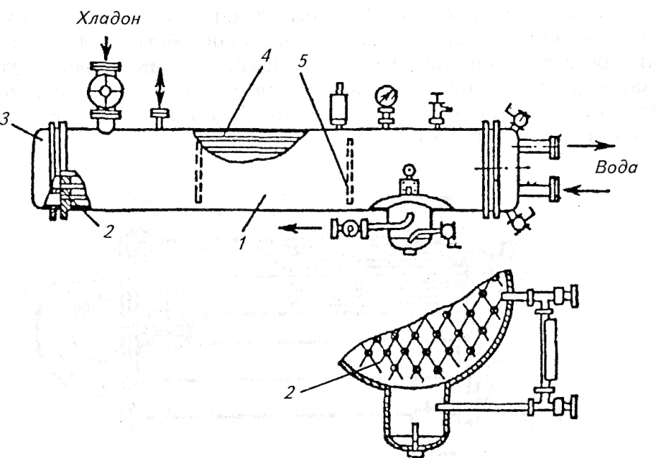 Рис. 11.3. Горизонтальный кожухотрубный конденсатор: