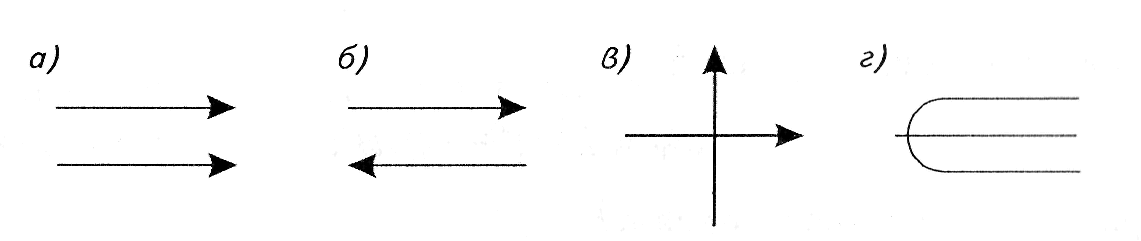 а- — при фазовых превращениях обоих теплоносителей; б — при испарении нагреваемого теплоносителя; в — при конденсации греющего теплоносителя; г — при прямоточном движении теплоносителей без фазовых превращений; д — при противоточном движении теплоносителей без фазовых превращений