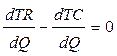 отсюда MR = MC, поскольку левая часть уравнения (dTR/dQ) представляет не что иное, как предельный доход, а правая (dTC / dQ) – предельные издержки.