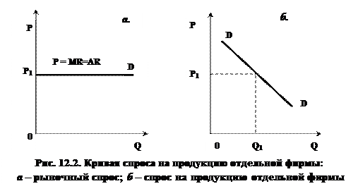 Кривая спроса DD для фирмы на рынке совершенной конкуренции выражается линией как среднего, так и предельного дохода (рис. 12.2 а) при постоянной цене Р.