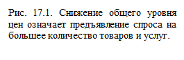 Когда цены на товары и услуги растут, то покупательная способность денег снижается. Это означает, что на ту же номинальную сумму денег можно купить меньше товаров и услуг. Потребительские расходы домашних хозяйств сокращаются, следовательно, величина совокупного спроса уменьшается: