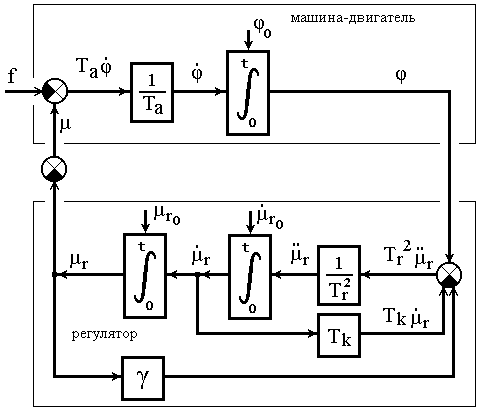 Здесь также первое уравнение определяет динамику машины-двигателя (без саморегулируемости), второе - динамику статического регулятора.