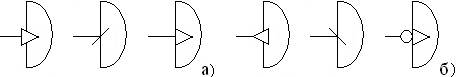 Первые реагируют на состояния входов (обозначение на рис. 2) и переключаются при наличии соответствующего потенциала (уровня напряжения). Динамические входы реагируют на изменения состояния на входах и управляются переходом между потенциалами. Передним фронтом импульса из 0 в 1 (варианты обозначения на рис. 3, а) или задним фронтом из 1 в 0 (рис. 3, б).