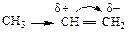 СН вызывают сильный сдвиг электронов двойной связи, т.е. поляризацию со сдвигом электронной плотности к атому углерода, не соединенному с алкильной группой:
