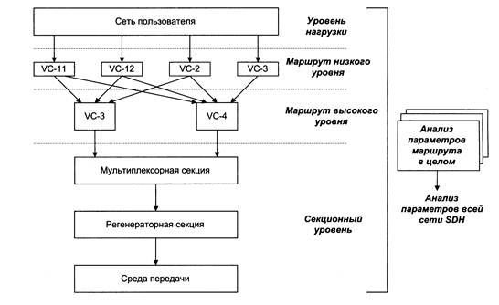 | Секционный уровень | Параметры электрических/оптических интерфейсов. Параметры ошибок, анализ сообщений о неисправностях. Контроль автоматического переключения. Анализ джиттера и вандера линейного сигнала. |