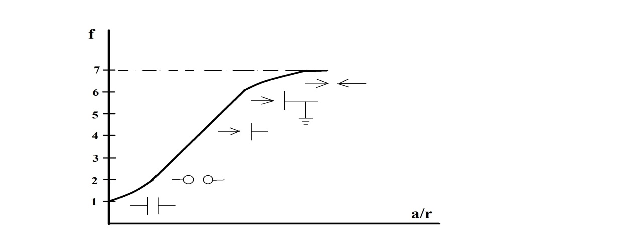 Коэффициент неравномерности зависит от отношения расстояния между электродами а к радиусу кривизны электродов r, данная зависимость представлена на рисунке 6: