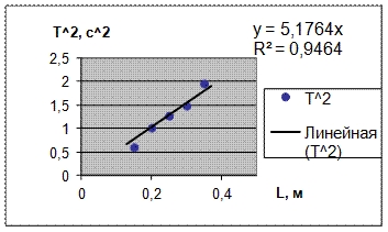 и строится график зависимости Т(l). Затем учащиеся строят спрямлённый график в координатах Т = f (l ½) или T2 = f (l) (рис.3).Спрямление свидетельствует о справедливости математической формулы (3).