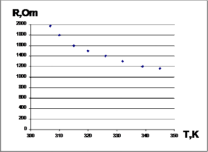Рис. 5. Зависимость сопротивления полупроводника от температуры