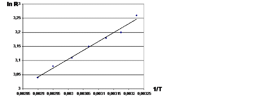 Рис. 6..Спрямление функции (10) в координатах ln R = f (1/T),