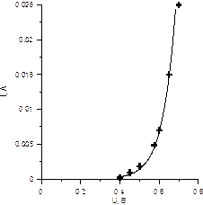Пример 1. Известно, что вольтамперная характеристика (ВАХ) вакуумного диода на начальном участке является степенной функцией, именуемой законом трёх-вторых (закон Богуславского –Ленгмюра):