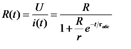 В этом выражении U/R=iуст –установившийся (сквозной) ток утечки через изоляцию и (U/r)exp(-t/