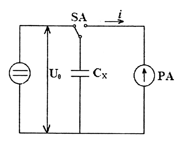 Переключатель SA периодически подключает испытуемую изоляцию к источнику постоянного напряжения, и Сх заряжается, а затем- к цепи с гальванометром РА, и Сх разряжается. Измерения проводятся при частотах переключения 2 и 50Гц, поэтому