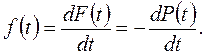 называется вероятностью безотказной работы (ВБР), а в ГОСТе [2] – моделью надёжности. В старой литературе (примерно 1959-1970 гг.) ВБР называли также функцией надёжности. ВБР является функцией наработки t. Обычно эту функцию предполагают непрерывной и дифференцируемой. Поэтому Р(t) связана с вероятностью отказа F(t) и плотностью распределения f(t) наработки до отказа (дифференциальным законом распределения (ДЗР) наработки до отказа) соотношением (3.3):