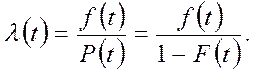 Широко применяется также понятие интенсивность отказов λ(t) – условная плотность вероятности возникновения отказа объекта, определяемая при условии, что до рассматриваемого момента времени отказ ещё не возник.Интенсивность отказов λ(t) определяют по формуле: