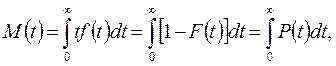 ДЗР удобно характеризовать некоторыми временными характеристиками, именуемыми характеристиками положения или характерными точками распределения, а также вторым моментом (дисперсией), характеризующей разброс случайной наработки относительно важнейшей характеристики положения – математического ожидания M(t) (м.о.) наработки t до отказа. Для непрерывной случайной наработки t до отказа её м.о. (первый момент) равно