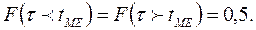 В общем случае асимметричного распределения м.о. его и его мода не совпадают. Медианой tMЕ непрерывной случайной наработки t называют такое её значение, для которого