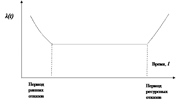 Рис. 3.2. Типичная кривая зависимости интенсивности отказов от времени