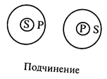 В отношении подчинения находятся имена, объем одного из которых полностью входит в объем другого.