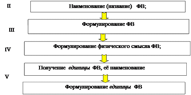 - достроим каркас схемы, добавив в качестве иерархических этажей этапы, раскрывающие содержание ФВ (физический смысл ФВ, единицу ФВ, наименование единицы ФВ, формулирование единицы ФВ).