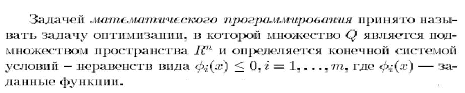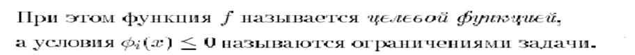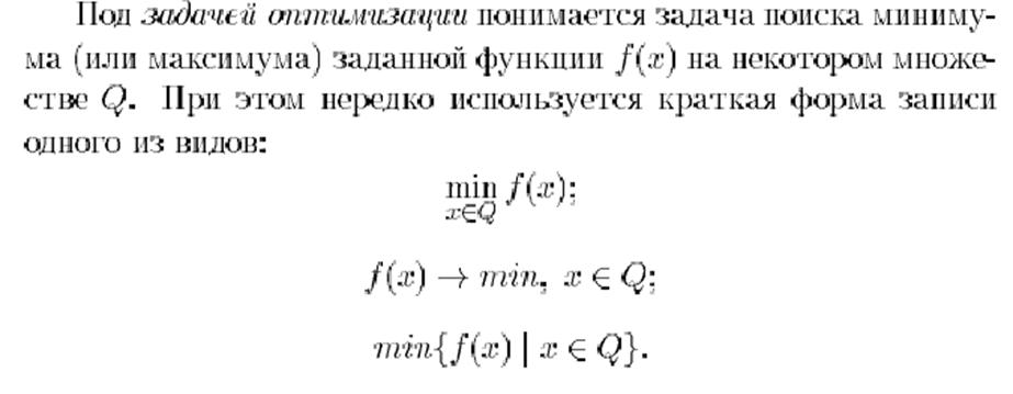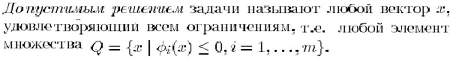 Оптимальным решением задачи (минимизации) называют допустимое решение, минимизирующее f (x) на множестве всех допустимых решений.