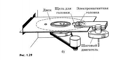 Их применяют в запоминающих устройствах электронно-вычислительных машин (ЭВМ). Магнитные пленки предназначены для записи, хранения и воспроизведения информации. Их наносят на тонкий алюминиевый диск или барабан. Информацию записывают и воспроизводят примерно так же, как и в обычном магнитофоне. Запись информации в ЭВМ можно производить и на магнитные ленты. Развитие технологии магнитной записи привело к появлению магнитных микроголовок, которые используются в ЭВМ, позволяющих создавать немыслимую ранее плотность магнитной записи. На ферромагнитном жестком диске диаметром меньше 8 см хранится до нескольких терабайт (10 12 байт) информации. Считывание и запись информации на таком диске осуществляется с помощью микроголовки, расположенной на поворотном рычаге (рис. 1.29, б). Сам диск вращается с огромной скоростью, и головка плавает над ним в потоке воздуха, что предотвращает возможность механического повреждения диска. Все вещества, помещенные в магнитное поле, создают собственное поле. Наиболее сильные поля создают ферромагнетики. Из них делают постоянные магниты, так как поле ферромагнетика не исчезает после выключения намагничивающего поля. Ферромагнетики широко применяются на практике.