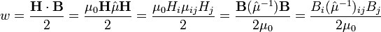 — магнитная постоянная. При выборе осей координат совпадающими с главными осями[13] тензора магнитной проницаемости формулы в компонентах упрощаются: